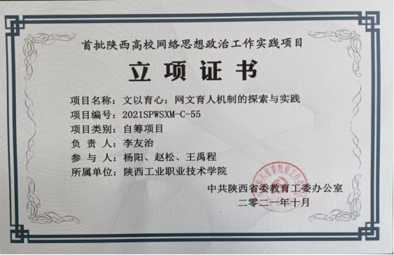 1.取得一批成果。“陕西工院友治之声”微信公众号上推送的《从五个方面浅谈与学生的沟通之道》、《谈心谈话高效进行的“三部曲”》2篇网文,分别荣获2018年度高校“十大育人”网络作品征集活动二等奖和三等奖,根据网文录制的《大学生活应该如何度过》微课荣获五届陕西高校网络教育优秀作品推荐展示活动优秀奖;以该平台为基础申报实践项目《文以育心:网文育人机制的探索与实践》立项并结题(项目编号:2021SPWSXM-C-55);网文《写给大学新生:我为什么要鼓励你积极争取入党?》荣获六届陕西高校网络教育优秀作品推荐展示活动优秀奖;同步在教育部大学生在线的“陕西工院友治之声”专栏,荣获中国大学生在线2022年度影响力专栏号。(全国仅十个)。