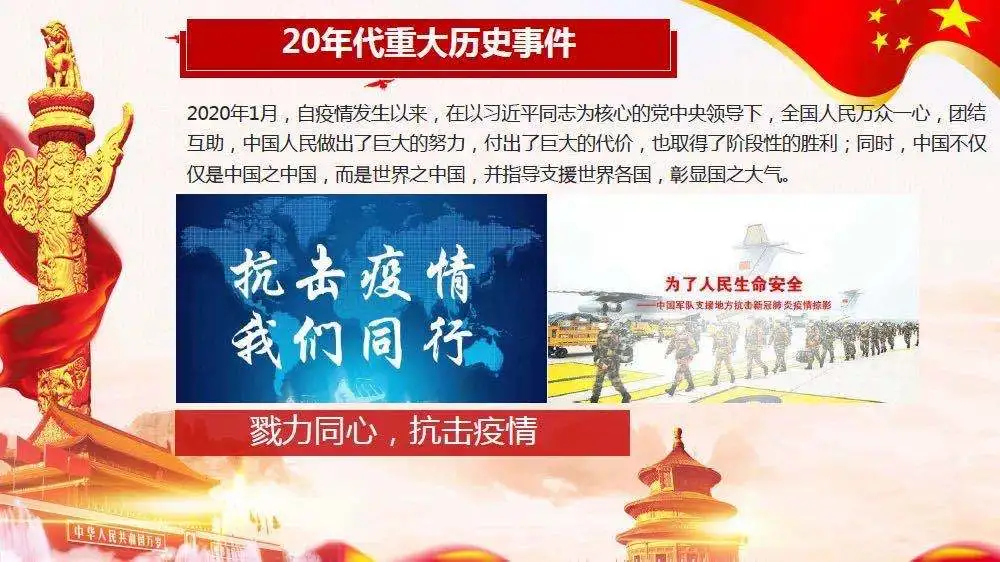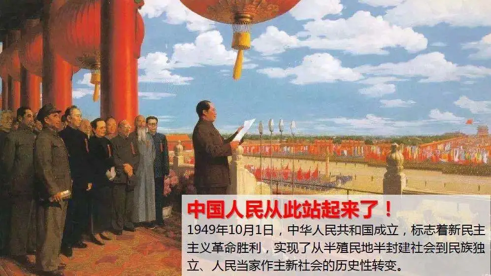 1949年10月1日,毛泽东同志向世界庄严宣告了中华人民共和国的成立,中国人民从此站起来了。通过回顾抗美援朝、南京长江大桥建成通车、两弹一星研发、恢复联合国合法席位、第一艘核潜艇下水服役等重大事件,是建国后30年革命和社会主义建设道路的曲折探索,为我国社会主义的发展奠定了不可否认的基础。