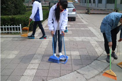 在活动当天,同学们自带劳动工具,不怕苦、不怕累、不怕脏,认真负责地打扫,利用中午一个多小时的时间彻底清洁了校园。每位同学用实际行动证明属于自己的那一份雷锋精神。
