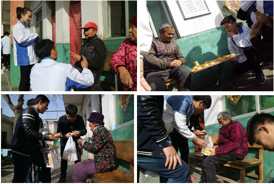 同学们怀着诚挚之心,带着慰问品来到敬老院,老人们热情欢迎。同学们分组进行服务,有打扫卫生的;有为老人剪指甲的;有分发水果点心的;有给老人唱歌的;有陪老爷爷们下象棋的;有的则陪伴老人们回忆当年的青春生活,讲他们当年的下乡插队时的故事,讲述着改革开放前后的个人经历,了解今天的幸福来之不易。同学们也把自己在外读书情况以及自己家乡情况给老人们一一讲述。不时传来阵阵笑声,同学们的到来使原本寂寞的敬老院充满了快乐。三个多小时的志愿服务很快就过去了,在老人们不舍之下一一告别。