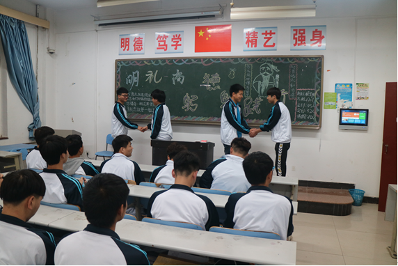 纸上得来终觉浅,绝知此事要躬行。本次主题班会,除文明礼仪、品德修养等方面知识的学习之外,融入了“现学现做”环节,让学生将学习的文明礼仪进行演练,以此激活学生积极主动性,提升学生个人“明德尚礼”之修养。