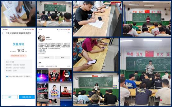会上,班主任通过生动的案例和详细的数据,向同学们介绍了电信网络诈骗的常见手段、危害性以及防范方法。全体同学郑重签署了《不参与电信网络诈骗犯罪承诺书》,关注了秦探视频账号。同学们一致表示,将严格遵守承诺书中的各项规定,不参与任何形式的网络诈骗活动,不泄露个人信息,不轻信不明电话和短信,不向陌生人转账汇款。为了检验同学们对防诈骗知识的掌握情况,班会还设置了在线答题环节,通过在线答题的方式进一步提高了同学们的防范能力。