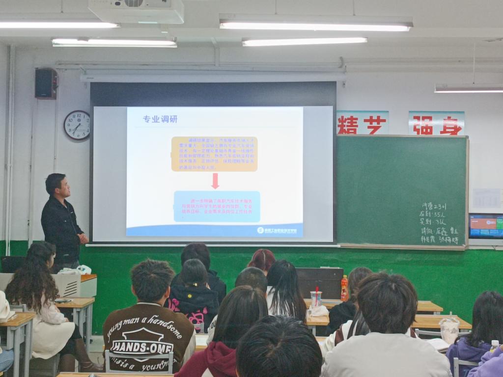 10月16日晚上19:30~21:30,汽车技术服务与营销专业在崇文北楼206成功举行了专业介绍活动,汽车商务教研室贾长建老师作为主持人兼主讲人,汽车学院教师郭俊利老师、孙延老师以及2023级汽车技术服务与营销专业全体新生参加了本次活动。