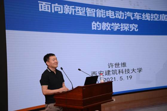 会上,副院长梅创社致辞,他首先代表学院欢迎与会专家学者、兄弟院校领导、老师的到来,随后着重介绍了我院建设发展方向。全国汽车职业教育专家、中国汽车工程学院特聘专家,高级工程师赵丽丽围绕汽车职业教育发展变革、智能网联汽车技能人才岗位定位、人才需求等问题就智能网联汽车专业建设白皮书进行了解读及教学标准分享。西安建筑科技大学硕士生导师许世维博士,应邀就《面向新型智能电动汽车线控底盘的教学探究》做主旨演讲。