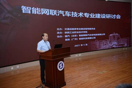 2021年5月19日,智能网联汽车技术专业建设研讨会在陕西工业职业技术学院召开。本次会议由陕西省职教学会交通运输类专业建设指导委员会主办,陕西工业职业技术学院承办,陕西省职业技术教育学会指导,国汽(北京)智能网联汽车研究院有限公司支持。交通运输类专业建设指导委员会副主任委员赵熹主持。陕西工业职业技术学院党委委员、副院长梅创社出席会议并致辞。