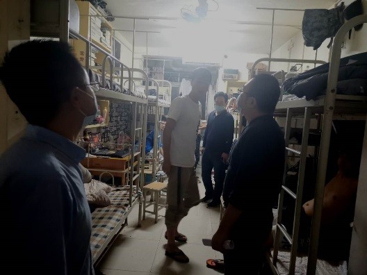 晚上七点开始,党总支书记高亚宁带领全体辅导员深入学生宿舍开展安全卫生大检查,叮嘱学生注意宿舍卫生,在公寓内不聚集、不串门,积极配合公寓管理员和辅导员做好每日的健康打卡监测和教育管理工作。