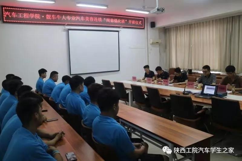 为了更好地促进校企合作,提高专业对口率和学生就业质量。7月21日上午十点,靓车牛人专业汽车美容连锁·陕西工业职业技术学院“岗前强化班”开班仪式在崇文南楼五楼会议室举行。