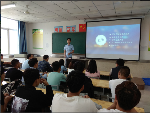 由杨阳老师对新能源汽车技术分别从五个方面展开本次专业介绍。分别从行业现状及发展前景、就业岗位分析、实训场地条件、人才培养方案及课程体系、毕业条件等五方面对2017级新能源汽车技术专业的学生进行了详细的专业介绍,从而使学生们深刻了解自己专业学习内容以及日后所从事的工作等。之后全体老师进行了相应的补充,以及对学生们日后在学校的发展提出几点要求和期望,希望同学们在大学期间学会学习、学会生活、学会做人。