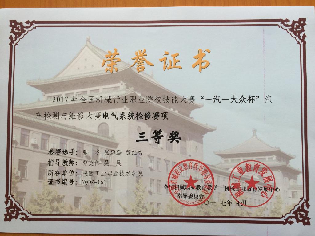 7月18日,“一汽-大众杯”汽车检测与维修技能大赛-汽车电气系统检修分赛项进行了比赛,比赛时间为一个小时,需要对迈腾B8舒适系统及照明系统的故障进行检测和排除,经过激烈的角逐,最终我院由郭炎伟老师、吴晨老师指导的张冬、张森磊、黄红智三位同学所组成的队伍获得了大赛三等奖。