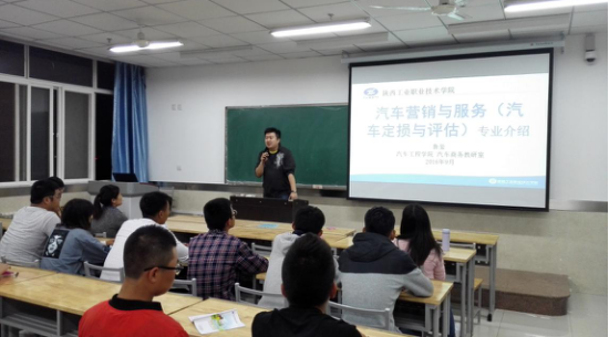 为帮助2016级新生在最短时间内了解学校,熟悉专业,明确学习目标,树立专业理想,9月18日晚自习,汽车工程学院汽车商务教研室在理实楼举行了汽车营销与服务专业(汽车定损与评估方向)介绍会,参加介绍会的有教研室全体老师以及汽营1603、1604班全体同学,另外,还特意邀请了在人保工作的学长前来参加此次介绍会。