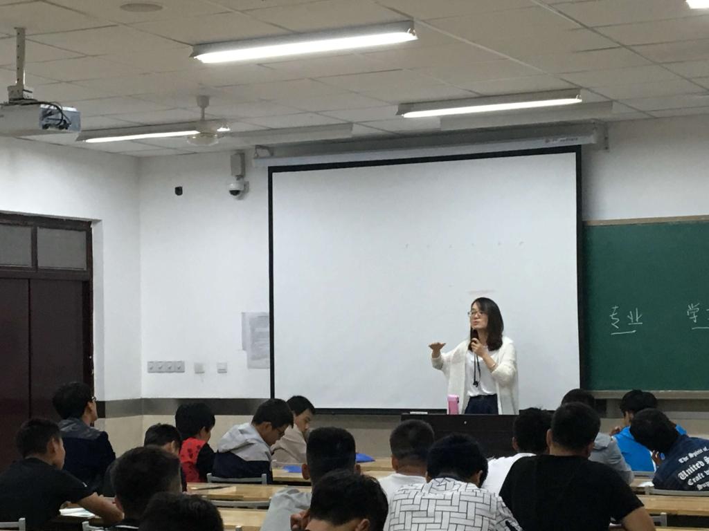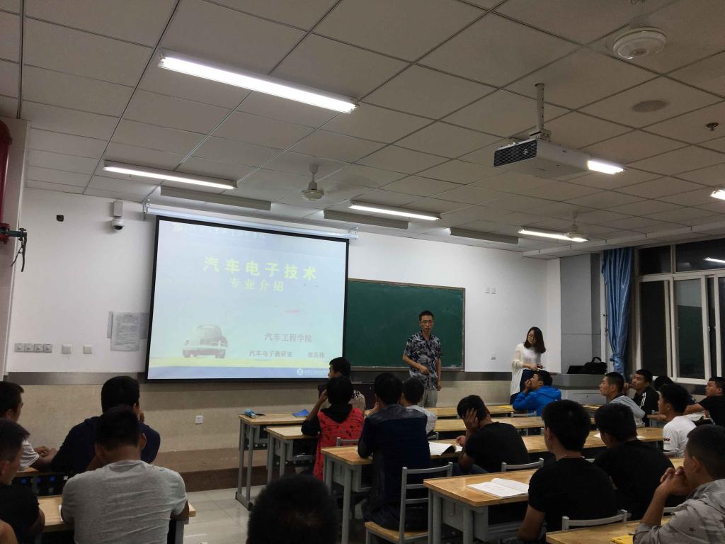9月18日晚,汽车电子技术教研室在理实楼806教室成功举行了专业介绍活动,该教研室主任郭炎伟老师、助教吴晨老师、宋真玉老师、韩丹老师以及数名大二学生代表和2016级汽车电子专业全体新生参加了本次活动。