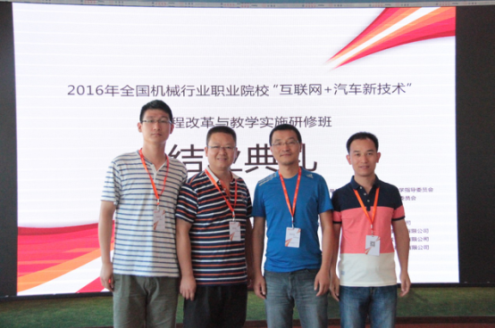 炎炎暑期,为了主动适应《中国制造2025》对创新型技术人才的需求,推动加工制造、汽车服务类专业创新发展,引导新能源汽车、汽车改装、汽车养护等专业的建设和课程改革,不断提升相关专业教师教学能力和职业院校技术技能人才培养质量,我院决定派陈昊平副院长、许冀阳主任、夏伟老师和宋真玉老师参加由全国机械职业教育教学指导委员会产教合作促进与指导委员会主办的“2016年全国机械行业职业院校‘互联网+汽车新技术’课程改革与教学实施研究班”。